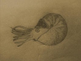 | オウムガイ類はカンブリア後期に出現。オルドビス紀には様々な種類に派生したが、古生代末にはオウムガイ目以外は絶滅した。唯一の残存種はNautilus(ノーチラス属)。 | |